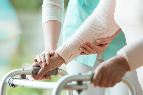 균형 감각도 영향을 받으면서 평소 잘 서있지 못하거나 비틀거리고 넘어지기 때문에 지팡이나 휠체어를 의지하게 됩니다.