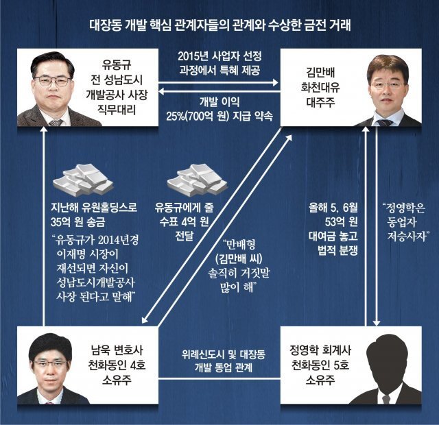 이 회사와 연관된 사람이 매우 많은데, 권순일 전 대법관은 해당 회사의 고문이었고, 이재명 경기지사가 친형 강제입원 사건으로 검찰 수사를 받을때 변호인이었던 강찬우 전 수원지검장은 화천대유의 자문 변호사였습니다.