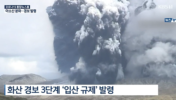 20일 오전 11시 43분쯤 일본 남부 규슈 구마모토현에 있는 활화산 중 하나인 아소산이 분화했습니다. 일본 아소산 화산폭발은 지난 2016년 해발 11km 높이까지 연기가 솟아오르는 큰 화산 분화가 있은 후 5년만에 분화 활동을 진행한 것입니다.