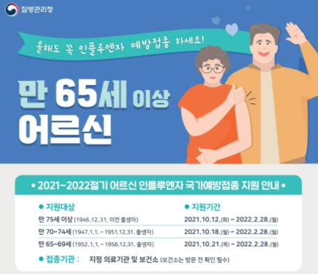 | 만 65세 ~ 69세 | 1952년 1월 1일 ~ 1956년 12월 31일 | 2021년 10월 21일 ~ 2022년 2월 28일 |