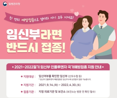 무료접종 기간 : 2021년 9월 14일부터 2022년 4월 30일