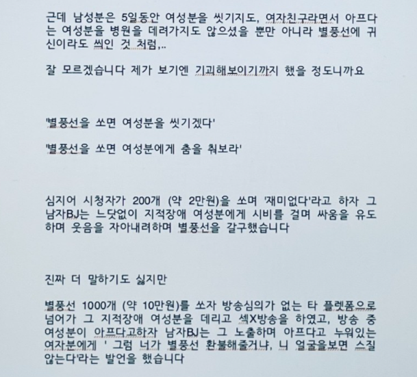 이는 BJ땡초와 무리들이 지적장애인 여성 C를 상대로 강제 추행한 혐의때문입니다. 아무런 대가를 제공하지 않은채 방송에 출연시켰으며, 벗방을 통해 자신들이 이익을 취했다고 합니다.